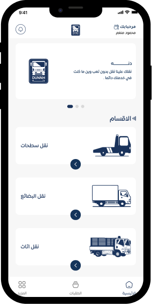 مرحبًا بك في [دنه]، منصتك الرقمية المتكاملة لخدمات نقل الأثاث، البضائع، والسطحات داخل المدن وبين المناطق كما يهدف الموقع إلى توفير تجربة سلسة، آمنة، وموثوقة، تربط العملاء بمقدمي الخدمات المحترفين بسهولة وفعالية.